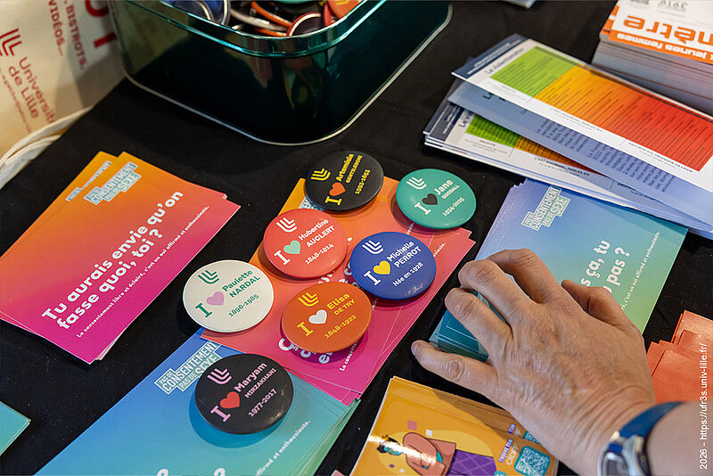 Violentomètres, plaquettes et flyers informatifs, guides de bonnes pratiques, mais aussi tote-bags, badges ou préservatifs, les équipes de la mission égalité diversité ont exposé au public ce vendredi le large panel de leurs ressources. Autant de matériel permettant l’ouverture au dialogue et la transmission d’informations ! Parmi les thématiques abordées : identité de genre, LGBT+phobies VSS, consentement, handicap, vaccinations, bizutage…