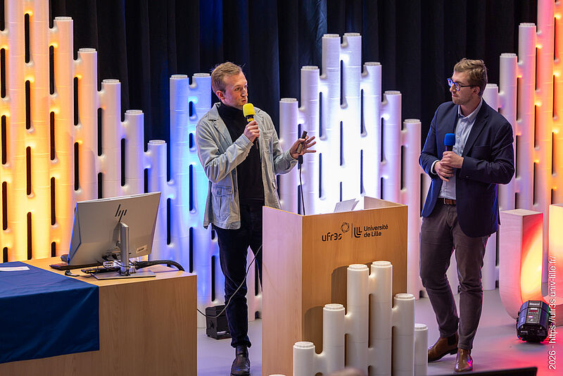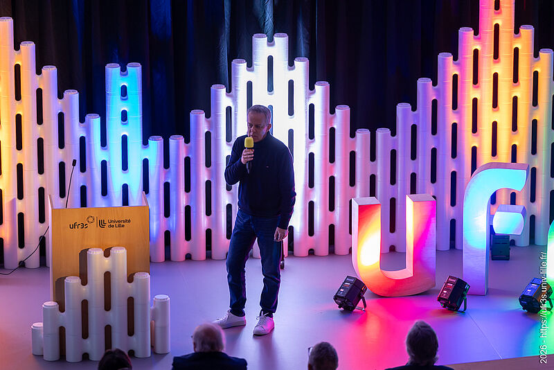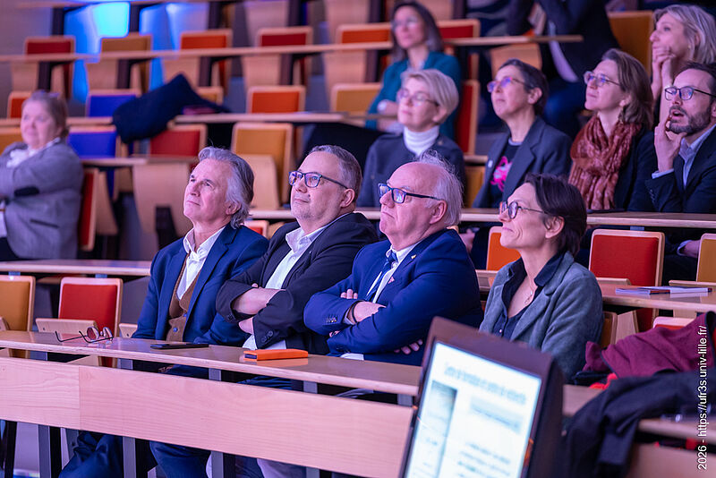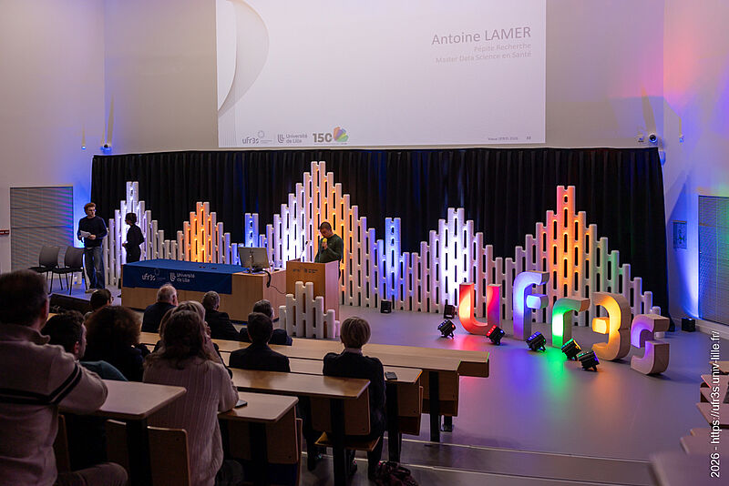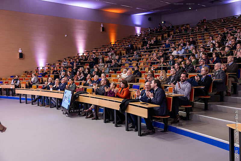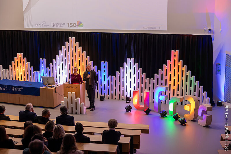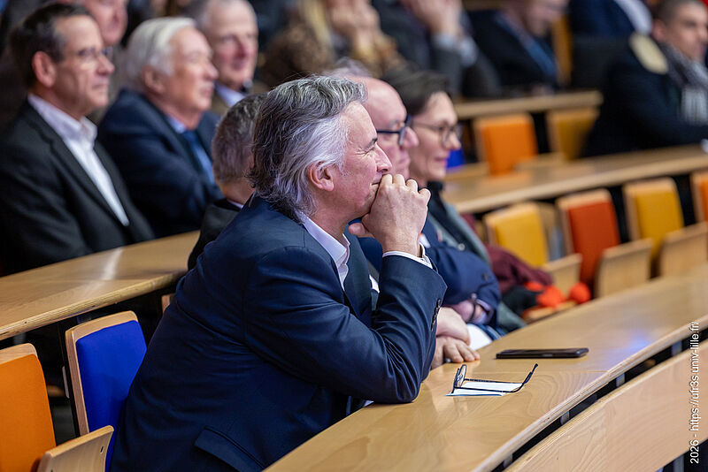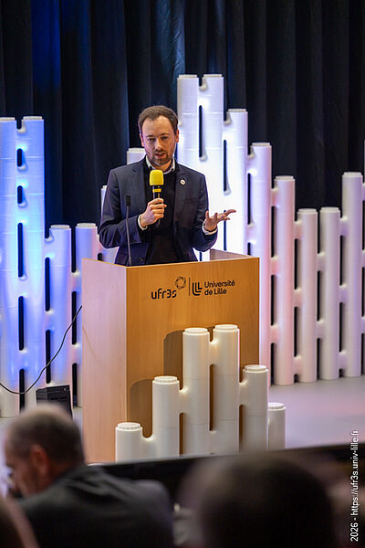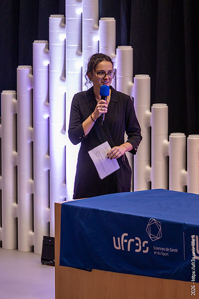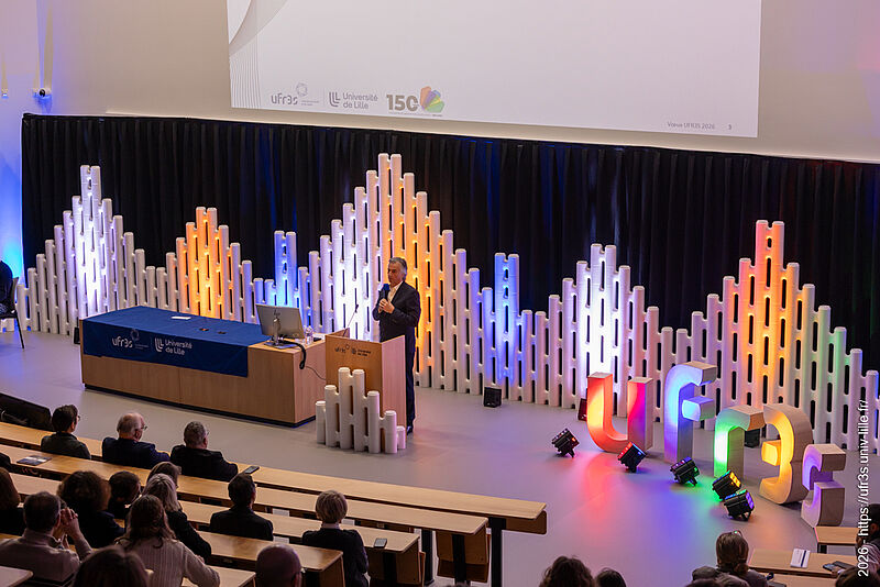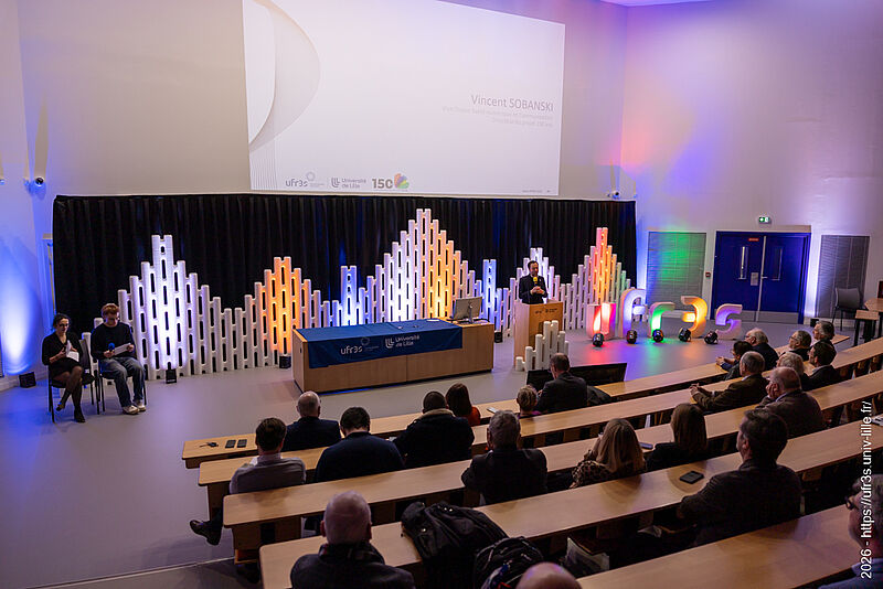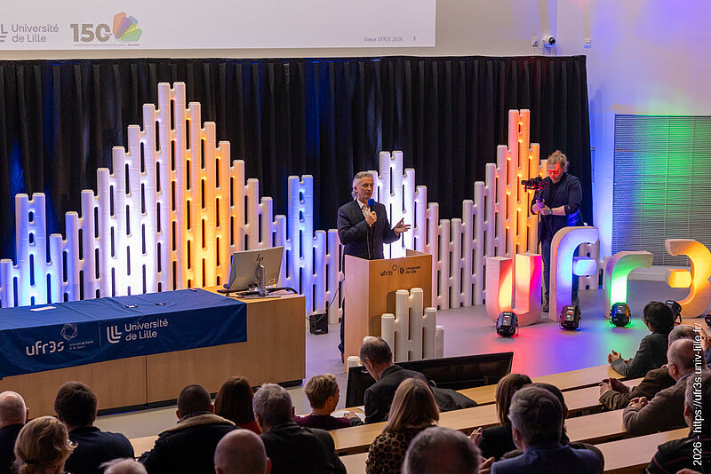 Le jeudi 22 janvier 2026, la cérémonie des vœux de notre faculté des sciences de santé et de sport a eu lieu au Pôle Formation. Le Pr Lacroix a eu le plaisir d’ouvrir cette cérémonie en compagnie de M. Boiron et du Pr Cordonnier, respectivement D.-G. et Présidente de la Commission Médicale d’Établissement du CHU de Lille. La parole a ensuite été laissée à nos maîtres de cérémonie, Marie Bidault et Enzo Scala, étudiants en sixième année de médecine.