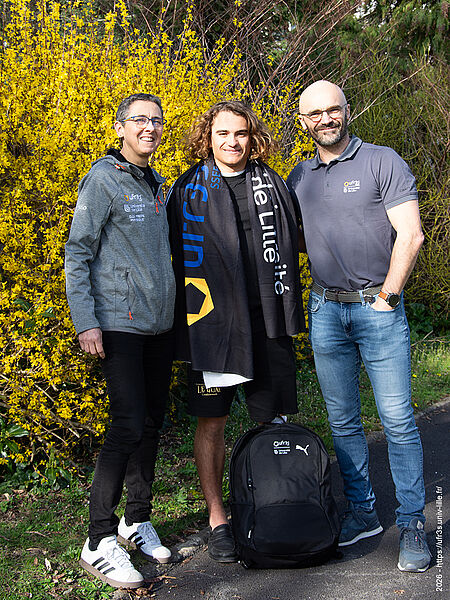 L’équipe de direction du département SSEP a souhaité féliciter Mattéo Lutun en personne pour ses exploits aussi inspirants que surprenants. Madame Murielle Garcin, Vice-Doyen du département, et Monsieur Yancy Dufour, enseignant et responsable du DU « préparation mentale du sportif », lui ont remis du matériel sportif floqué aux logos de l’UFR3S et de l’Université de Lille pour qu’il puisse porter avec fierté les couleurs de son établissement lors de ses prochains projets (challenges/projets/compétitions). Après avoir remporté le World Guinness Book Record de la plus longue nage sans s’arrêter, 50 heures de natation réalisées en décembre 2025 à la piscine de Bray-Dunes, Mattéo Lutun a participé en début d’année 2026 au championnat du monde en eau glacée en Finlande et y a atteint la deuxième place en nage papillon.