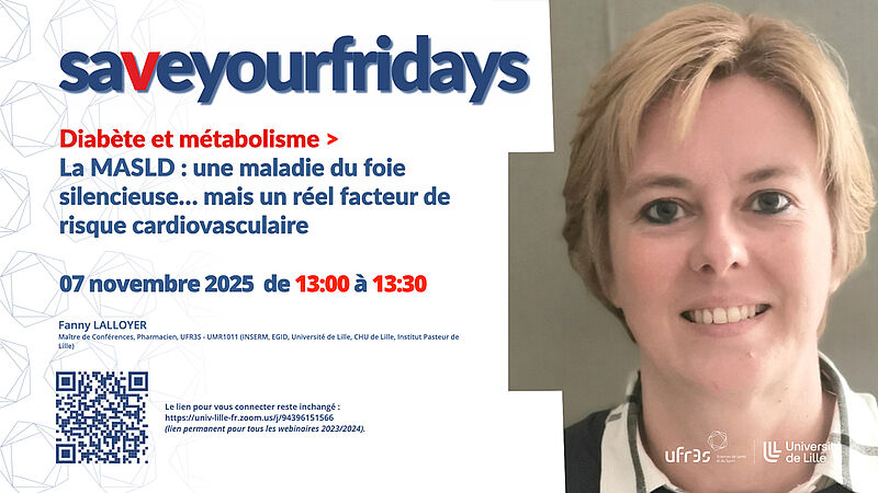 Intervenante : Fanny LALLOYER, Maître de Conférences, Pharmacien, UFR3S - UMR1011 (INSERM, EGID, Université de Lille, CHU de Lille, Institut Pasteur de Lille)