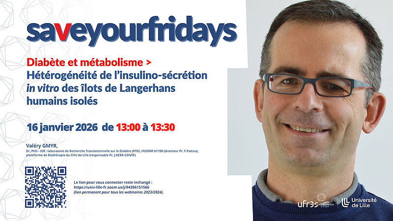 Intervenant : Valery GMYR, Dr, PhD - IGR : laboratoire de Recherche Translationnelle sur le Diabète (RTD), INSERM U1190 (directeur Pr. F.Pattou), plateforme de Biothérapie du CHU de Lille (responsable Pr. J.KERR-CONTE)