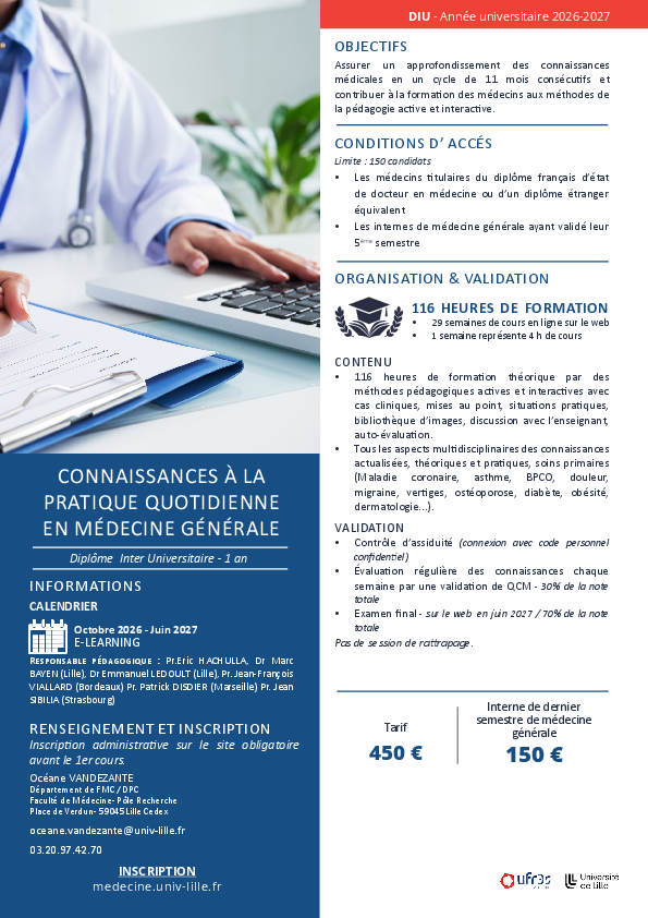 DIU Connaissances à la pratique quotidienne en médecine générale