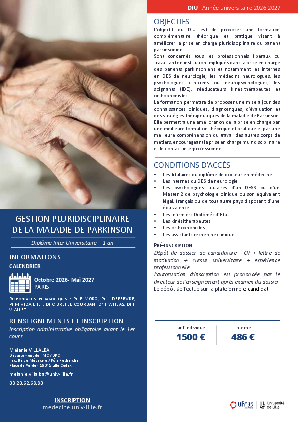 DIU Gestion pluridisciplinaire de la maladie de Parkinson