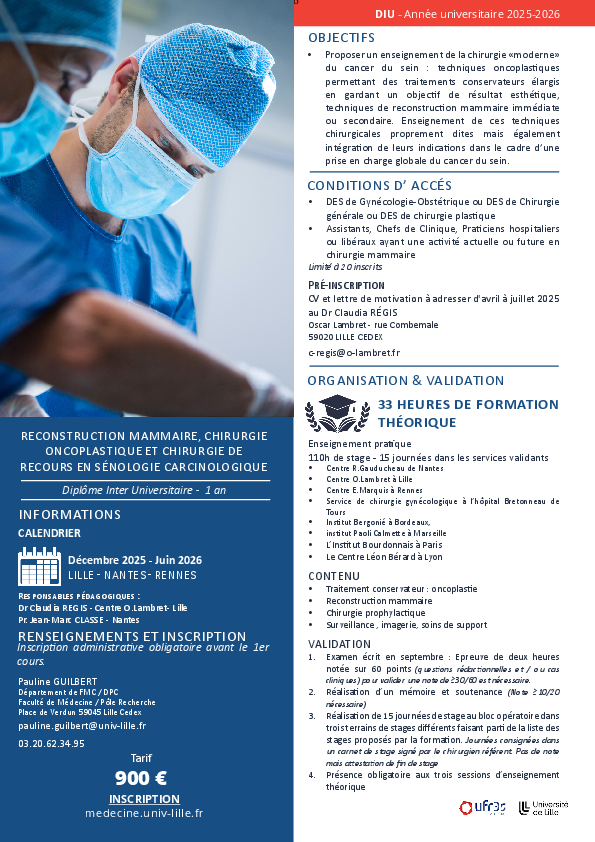 DIU Reconstruction mammaire, chirurgie oncoplastique et chirurgie de recours en sénologie carcinologique
