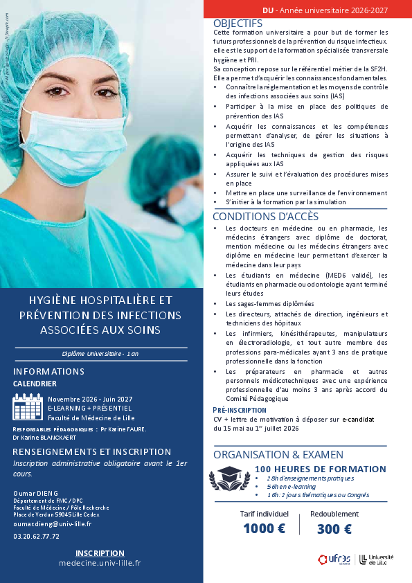 DU Hygiène hospitalière et prévention des infections associées aux soins
