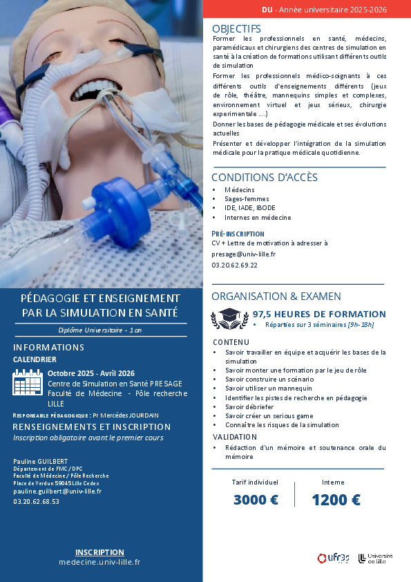 - Former les professionnels médico-soignants et médicochirurgicaux des centres de simulation en santé à la création de formations utilisant différents outils de simulation,