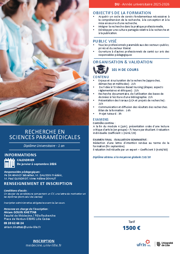 DU Recherche en sciences paramédicales