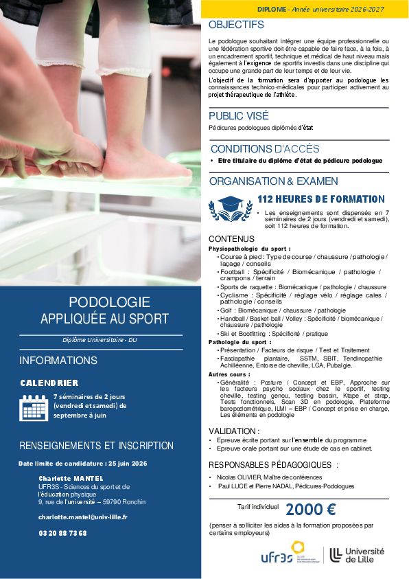 DU Podologie appliquée au Sport
