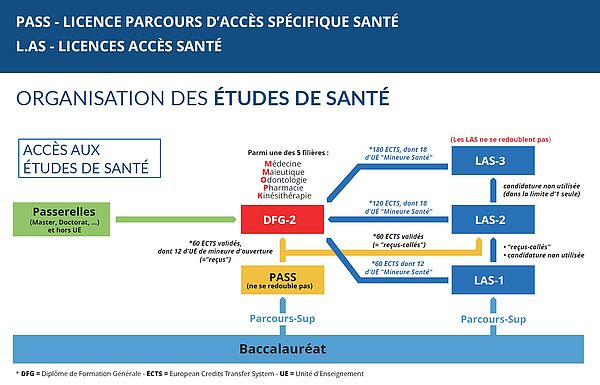 Pour l’admission en études de santé depuis une LAS, la validation en première session de tous les ECTS de la mineure santé qui correspond à l’année de dépôt du dossier de candidature est obligatoire.
