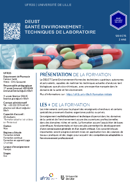 Trois DEUST sont enseignés au sein de la Faculté de Pharmacie de Lille :