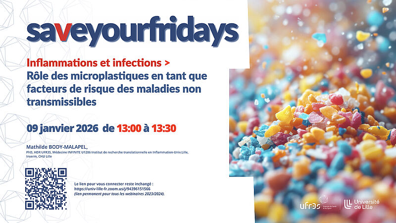 Le bureau de la recherche organise des animations scientifiques hebdomadaires ayant pour objectif de valoriser la recherche et de communiquer sur les avancées en biologie-santé du site Lillois. Ces webinaires, intitulés "Save Your Friday", ont lieu tous les vendredis de 13h à 13h30. Les webinaires accessibles à tous permettent aux unités de recherche impliquées dans les 11 thématiques de se présenter (5min) et d’effectuer une présentation vulgarisée de leurs travaux de recherche (15min) qui est suivie d’échanges questions/réponses (10min).