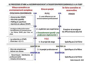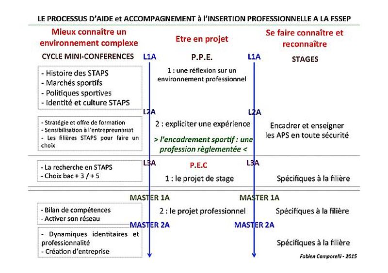 Face à la pluralité de ces métiers, la FSSEP a mis en oeuvre une mission relative à l'aide et à l'accompagnement de l'insertion professionnelle (AAIP) des étudiants inscrits dans la composante.
